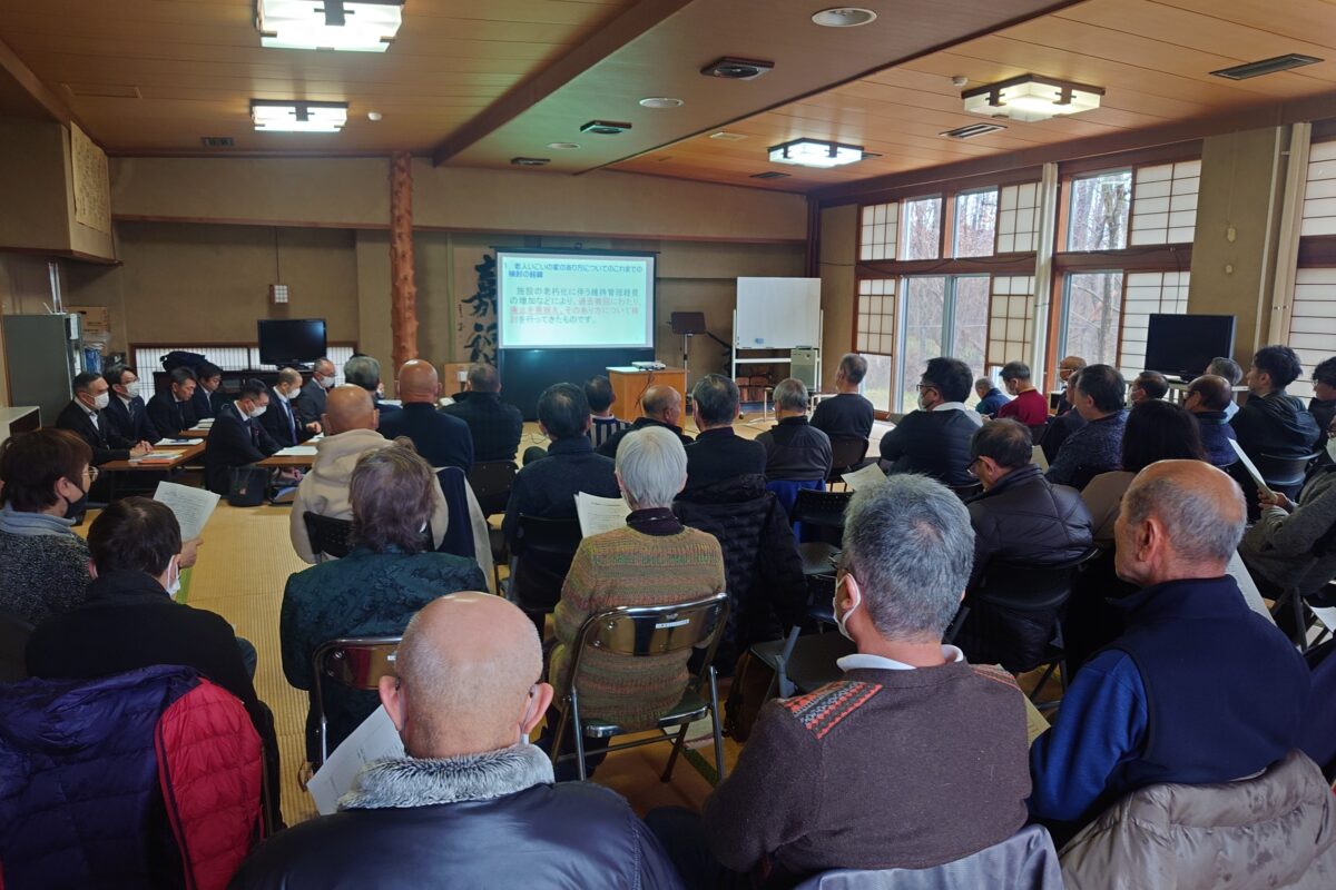 この2日前の12月25日、飯島老人いこいの家で、秋田市による利用者説明会がありました。秋に続く2度目の説明会です。会場には、70人ほどの利用者が集まりました。